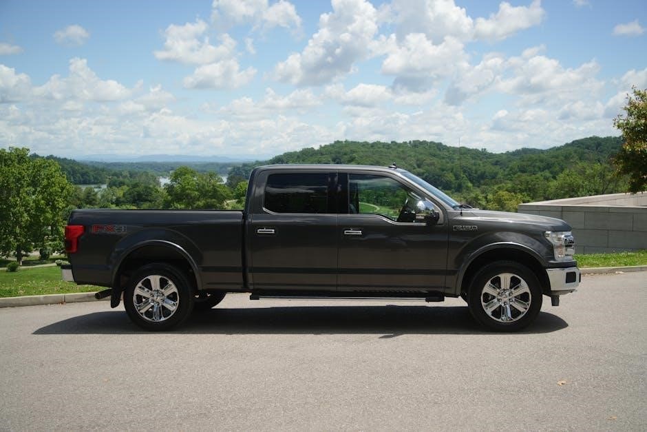 The 2019 Ford F-150 owner’s manual PDF details essential maintenance schedules, fluid specifications, and basic troubleshooting steps for reliable vehicle upkeep.